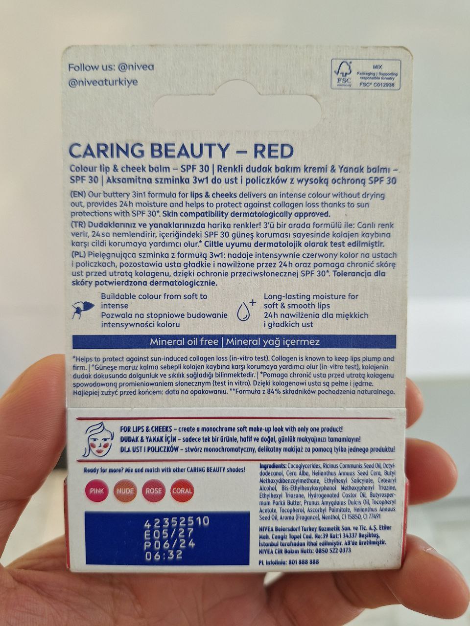 بالم لب 3 در 1 نیوا رنگ قرمز NIVEA Lip Caring Beauty Red